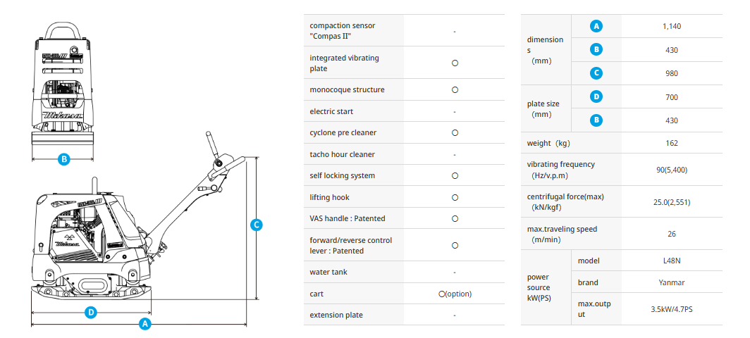 ●Conduite fluide en marche avant et arrière, idéale pour les travaux de compactage en tranchées.