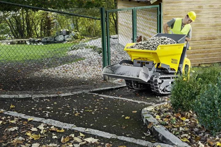 La transmission hydrostatique assure une commande facile et confortable et le capot-moteur monobloc associé à un agencement optimal des points d’entretien facilitent grandement l’entretien au quotidien. Les chenilles en caoutchouc et la répartition optimale du poids réduisent la pression au sol et permettent ainsi une utilisation de la machine dans de nombreux endroits. Les nombreux types de bennes disponibles en font un engin parfaitement polyvalent.