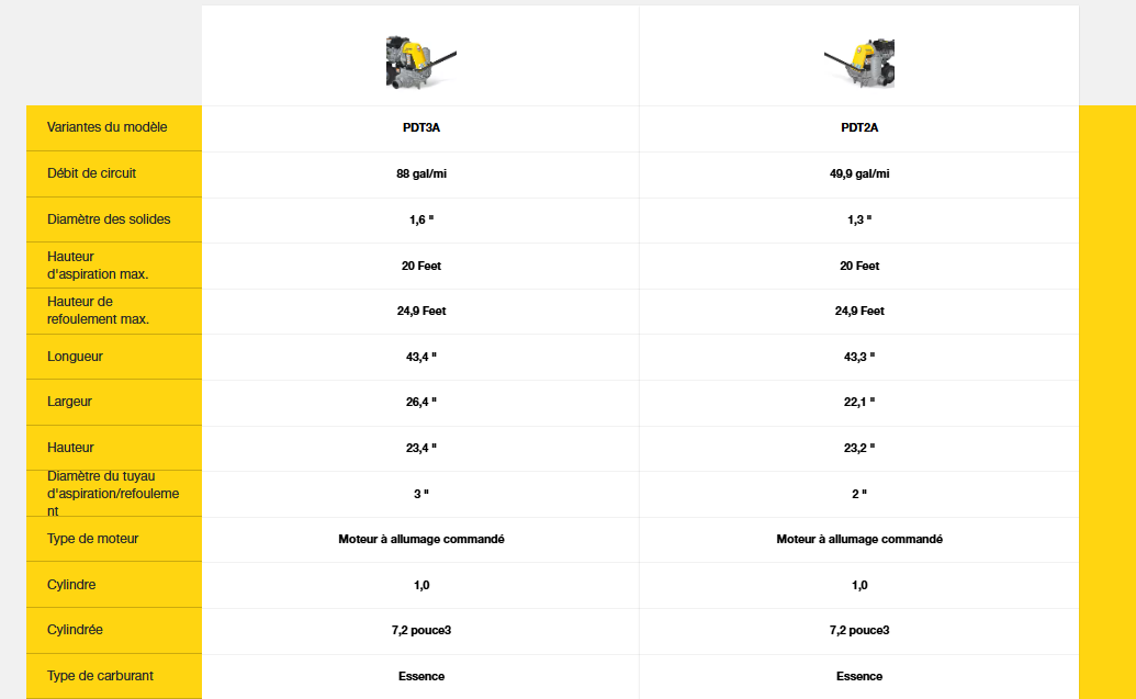 • La conception de l’écoulement de l’eau en ligne droite permet d’obtenir une capacité de pompage très élevée et d’éviter les temps d’arrêt dus à des obstructions.